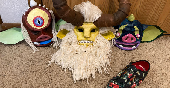 This was one of my first commissions I made to be used for a scavenger hunt for a birthday party. Each paper-mache mask was made using newspaper and wallpaper paste to create a base piece with foam clay and craft paper for larger elements as needed. I also had fun with yarn and acrylic paint to bring these iconic characters to life!